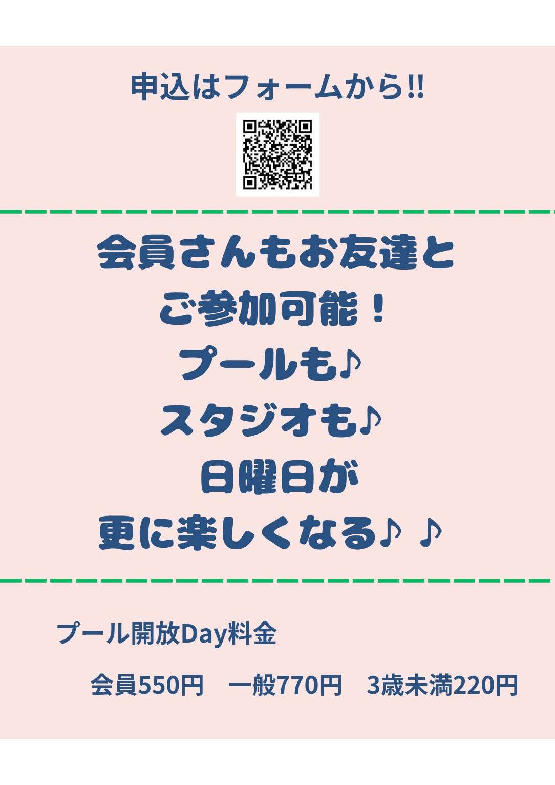 4月のプール開放日にあわせて、スタジオ無料体験Dayを開催します!