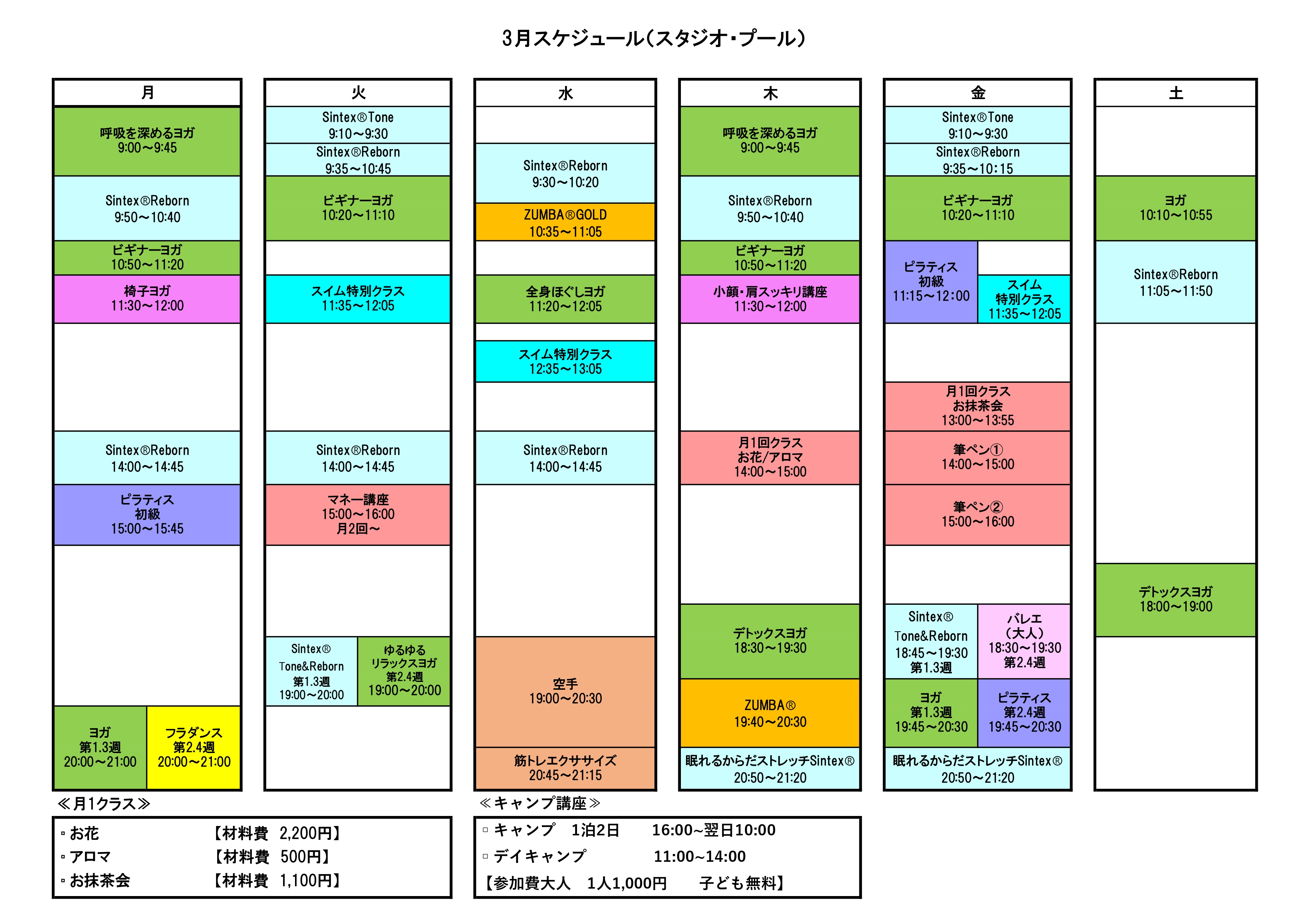 | ※事務手続き | スタジオもプールも通い放題! | プールの会費+上記の金額 | |||